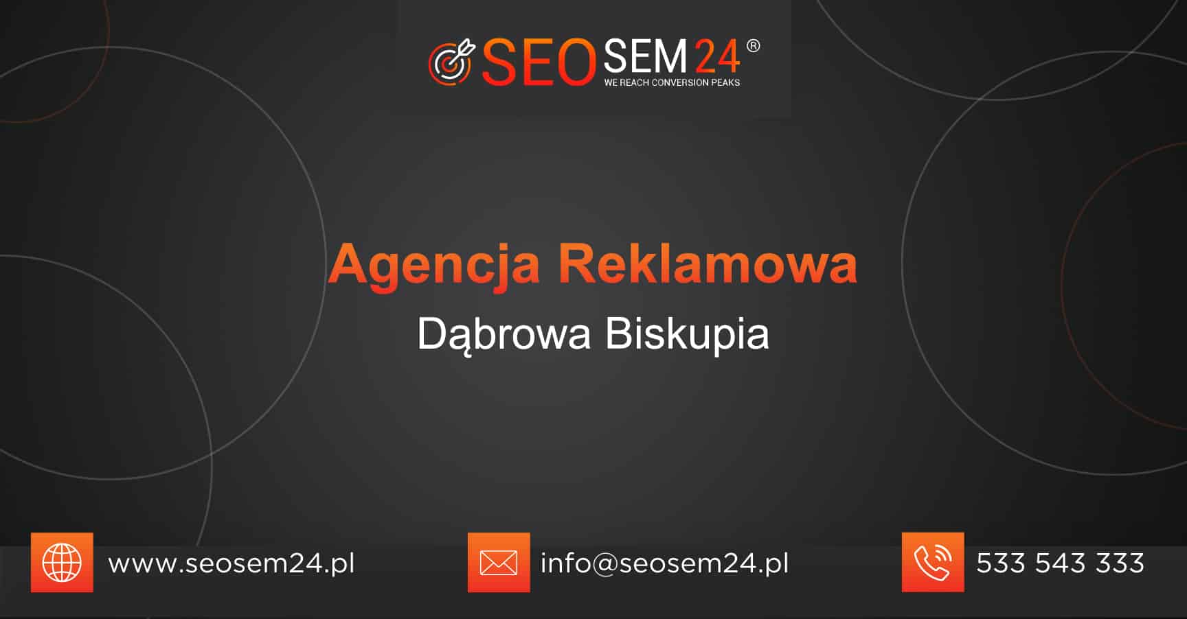 Jeśli chcą Państwo zlecić nam reklamę Dąbrowie Biskupiej, Polsce lub na świecie zapraszamy do kontaktu telefonicznego: +48 533 543 333 lub mailowego: info@seosem24.pl